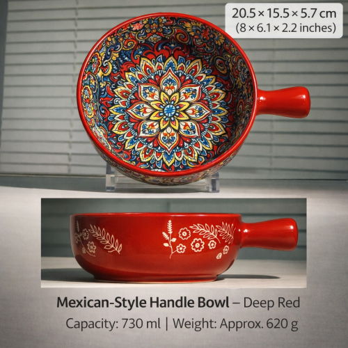 Measuring 22.5 cm × 18.5 cm × 5 cm, this plate is ideal for serving pasta, salads, baked dishes, or festive meals. Its dual-handle design adds convenience and charm, making it suitable for both casual dining and decorative serving.