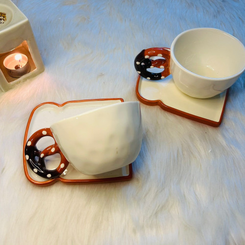 Elegant European‑style ceramic coffee cup with saucer and bread plate