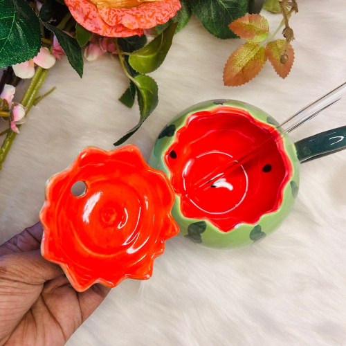 This cute watermelon ceramic mug is a playful and stylish gift option for boys, girls, and best friends. Crafted from premium white porcelain, it features a cartoon watermelon design with a straw lid, making it both functional and fun.