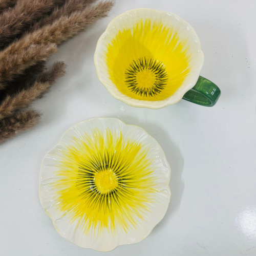Flower Shaped Coffee Cup & Saucer - Yellow