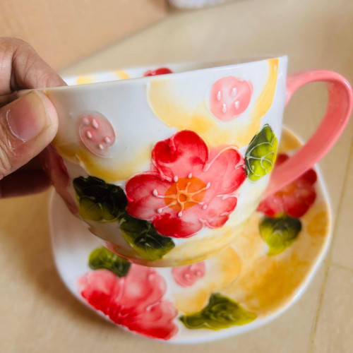 With a capacity of about 360 ml, it’s perfect for coffee, tea, or breakfast drinks. The matching saucer adds convenience and style, making it suitable for office use, afternoon tea, or as a thoughtful souvenir gift.