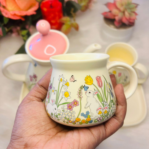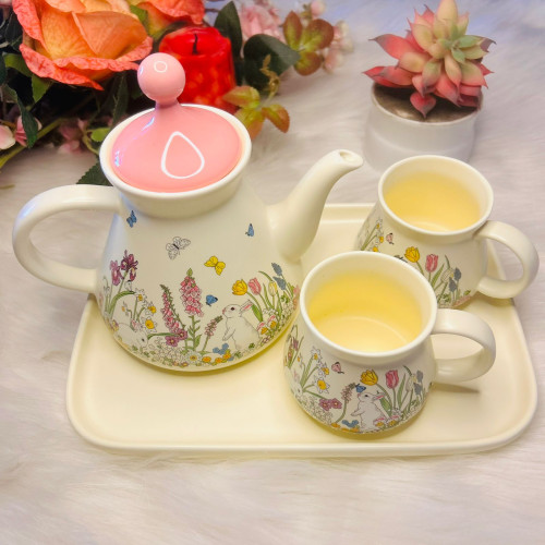 Packaged in a stylish gift box, the set embodies a fresh pastoral aesthetic, ideal for occasions such as birthdays, Women’s Day, or corporate gifting. The ceramic material ensures high temperature resistance, while the tray adds convenience for serving.