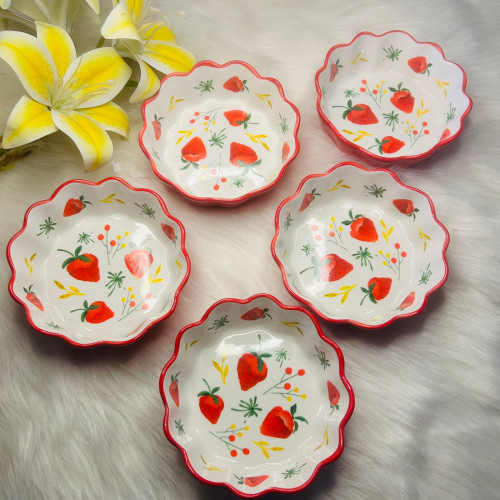 This Japanese Creative Lace Ceramic Bowl combines artistry with practicality. Featuring a scalloped edge design and a charming strawberry floral motif, it adds elegance to any dining table.