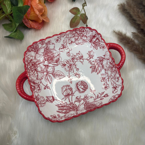 Elegant square ceramic plate with dual handles