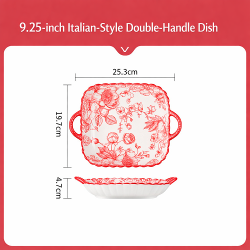 Measuring 25.3 cm × 19.7 cm × 4.7 cm (9.25 inch), it’s ideal for serving pasta, steak, desserts, or family meals. The dual-handle design adds practicality and elegance, making it suitable for both household dining and restaurant presentations.