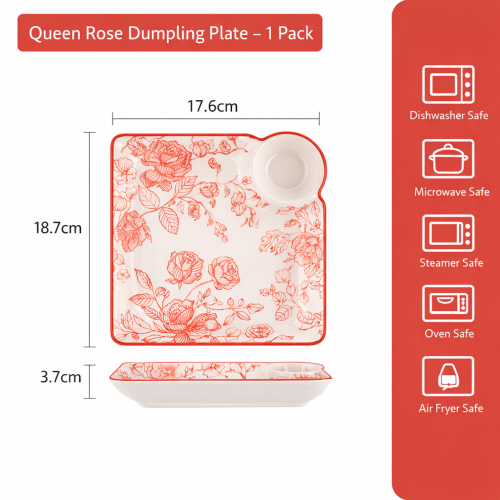 Measuring approximately 18.7 cm × 17.6 cm × 3.7 cm, this plate is ideal for serving dumplings, snacks, or side dishes. Crafted from premium ceramics with an underglaze finish, it is durable, smooth, and resistant to fading.