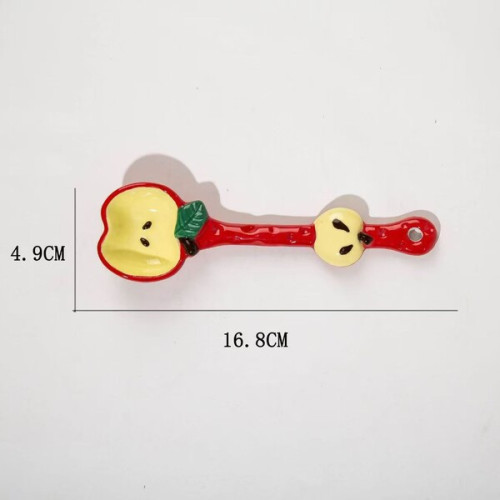 The Underglaze Ceramic Apple Spoon is a charming addition to household tableware collections. Featuring a fruit-inspired design, the spoon bowl resembles half of an apple, painted in yellow with a red outline and a green leaf detail.